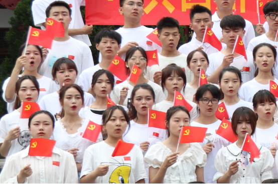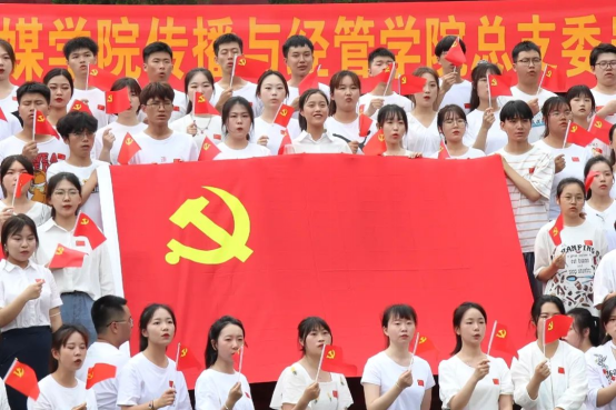 新入党的16名同志在王睿老师的带领下庄严宣誓:我志愿加入中国共产党,拥护党的纲领,遵守党的章程,履行党员义务,执行党的决定,严守党的纪律,保守党的秘密,对党忠诚,积极工作,为共产主义奋斗终身,随时准备为党和人民牺牲一切,永不叛党。