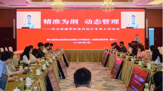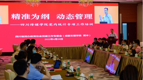 为确保2022年学校党内统计工作高质高效完成,切实提高学校党务工作者系统操作能力,4月28日,学校在多功能厅组织召开党内统计工作培训会。会议特邀四川省民办教育协会党建工作专委会成员贾冲同志作专题培训,各党总支、直属党支部分管党务副书记、组织员参加会议。会议由党委组织部副部长樊潇雨同志主持。