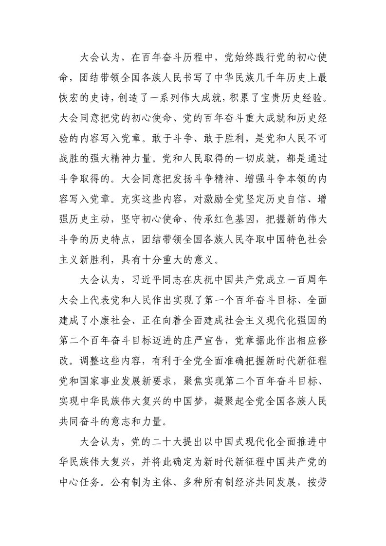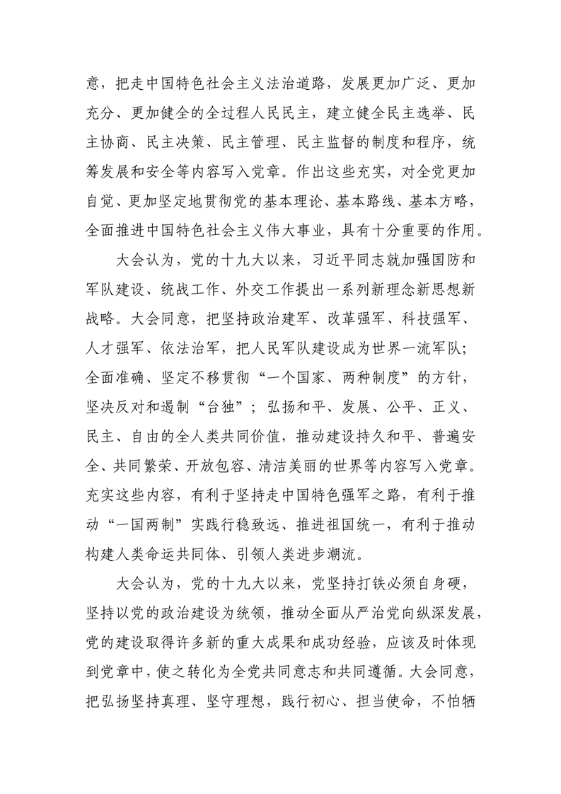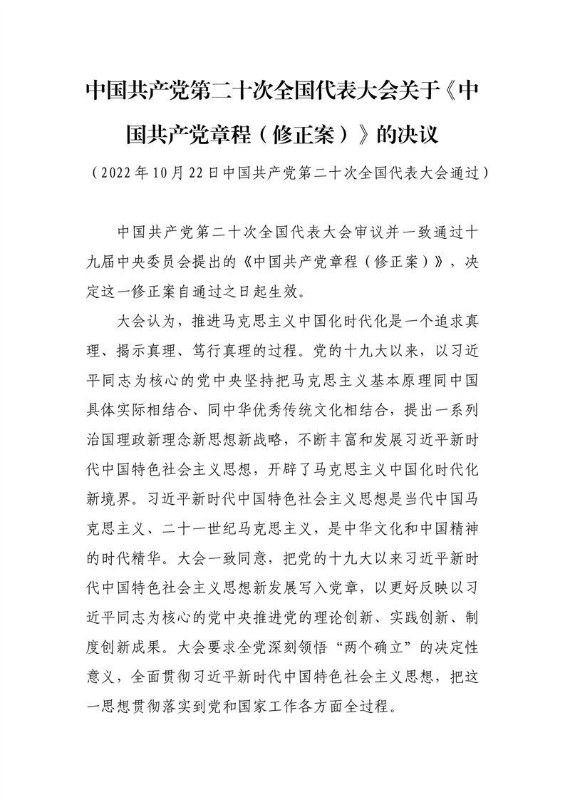 中国共产党第二十次全国代表大会关于《中国共产党章程(修正案)》的决议
