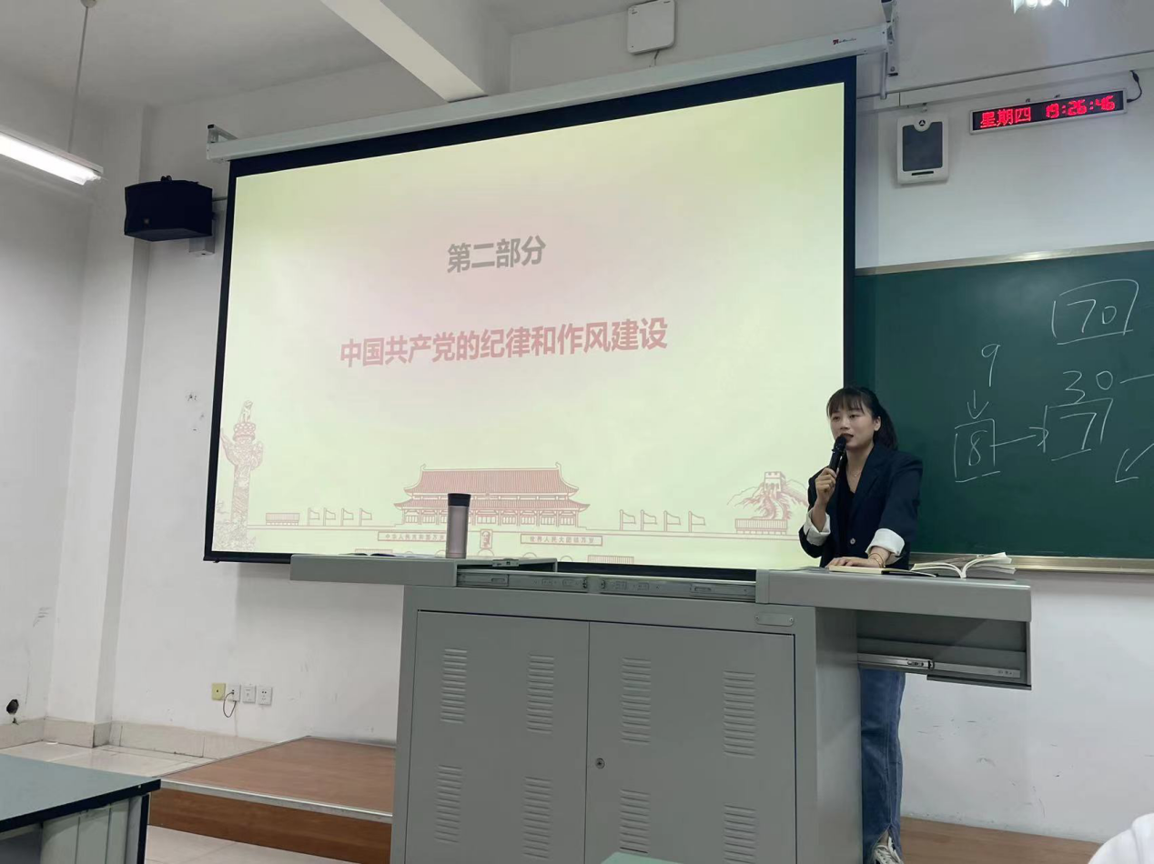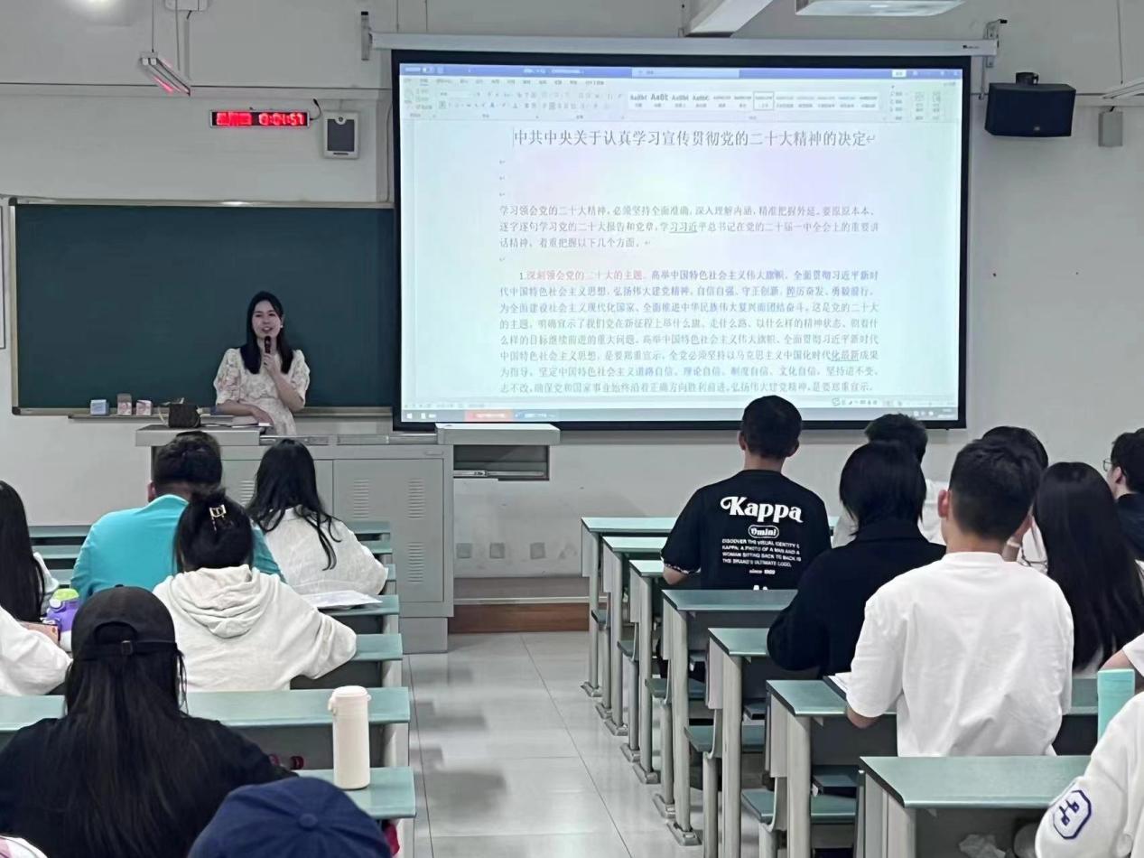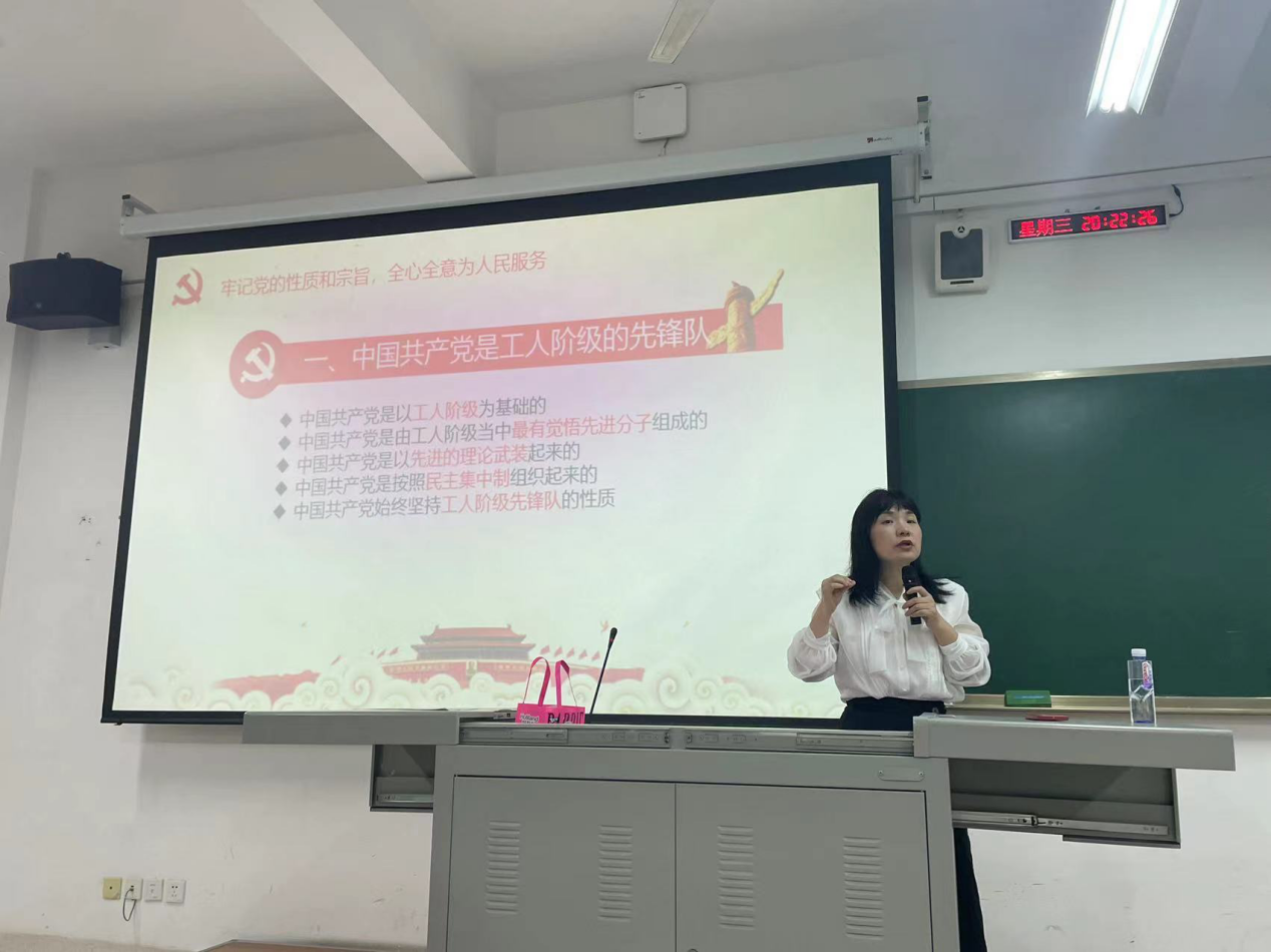莫诚成老师以《青年人的理想信念》为主题,分享了信仰在实现自我价值过程中的积极作用。他表示,青年兴则国家兴,青年强则国家强。他鼓励同学们作为新时代青年要继承和发扬五四精神,将“小我”融入“大我”,坚定理想信念,努力掌握科学文化知识和专业技能,积极参加社会实践和志愿服务活动,争做有理想、敢担当、能吃苦、肯奋斗的新时代好青年。候鑫老师结合生动的案例详细分析了党的民族政策,强调民族团结对于国家繁荣稳定的重要意义。她呼吁入党积极分子要坚定马克思主义信仰,自觉践行社会主义核心价值观,与一切邪教组织和破坏民族团结的势力做斗争,更加坚定跟党走的信心和决心。余程玲老师以《习近平新时代中国特色社会主义思想解读》为主题,详细地阐释了现代化社会的特点以及习近平新时代中国特色社会主义思想的形成过程,勉励青年学生要主动了解习近平新时代中国特色社会主义思想与时俱进的特点,高举中国特色社会主义伟大旗帜,砥砺奋进。贺莉娅副书记深入讲解了2022新修订的《中国共产党章程》,介绍了中国共产党章程的历史沿革,深度解析了中国共产党章程的时代变化,加深了同学们对中国共产党的宗旨、建党精神的理解和领悟。