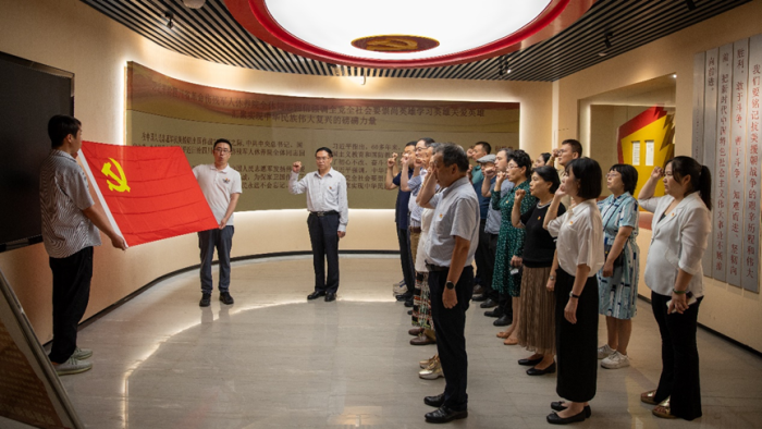 随后,全体党员干部庄重地重温了入党誓词。在校党委书记何建平同志的带领下,大家举起右拳,面向党旗,用铿锵有力的声音宣读誓词,表达了对党的忠诚和对人民事业的热爱。