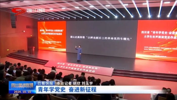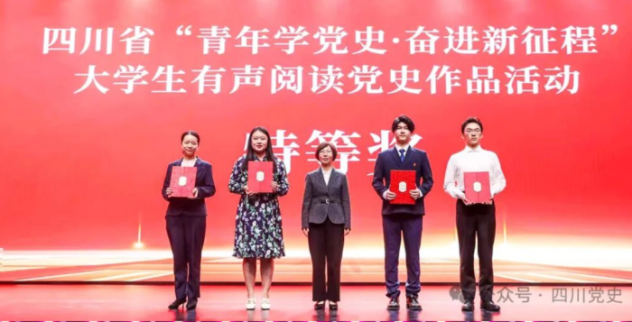 10月10日,四川省“青年学党史·奋进新征程”大学生有声阅读党史作品展演活动在四川传媒学院西区图书馆学术报告厅举行。活动由省委党史研究室、省委教育工委、团省委主办,西南石油大学、四川传媒学院承办。省委党史研究室主任荣凌、省教育厅一级巡视员戴作安、团省委副书记李佳林出席活动并讲话。西南石油大学党委书记张烈辉、四川传媒学院理事长张书玉致辞。四川传媒学院党委书记何建平,党委副书记、副校长刘黎出席活动并为获奖代表颁奖。